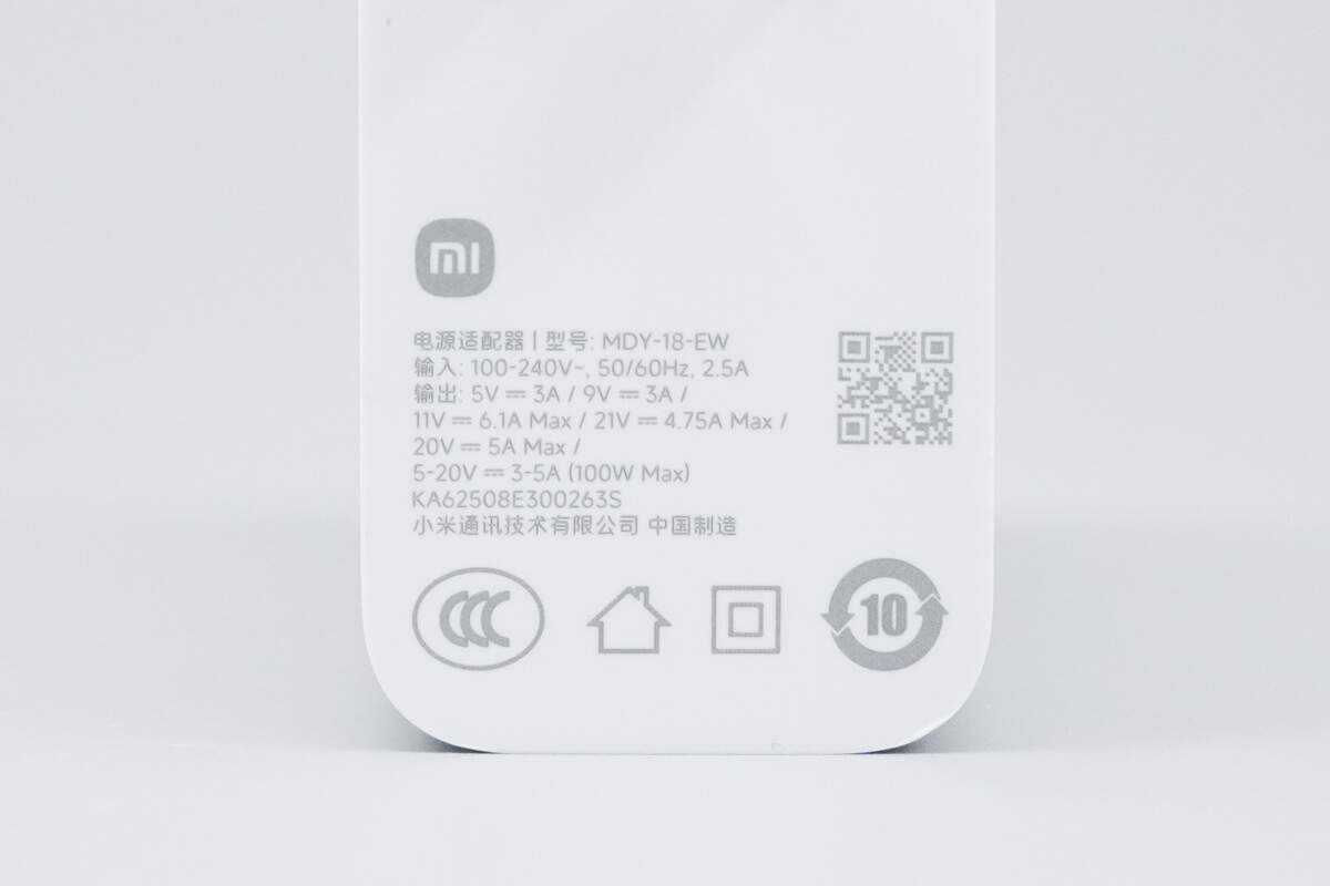 We obtained the original 100W GaN charger for the Xiaomi 17 series. This charger features a customized USB-A port and supports 65W PD fast charging as well as Xiaomi’s proprietary 100W fast-charging protocol. It accepts a wide AC input range of 100–240 V.