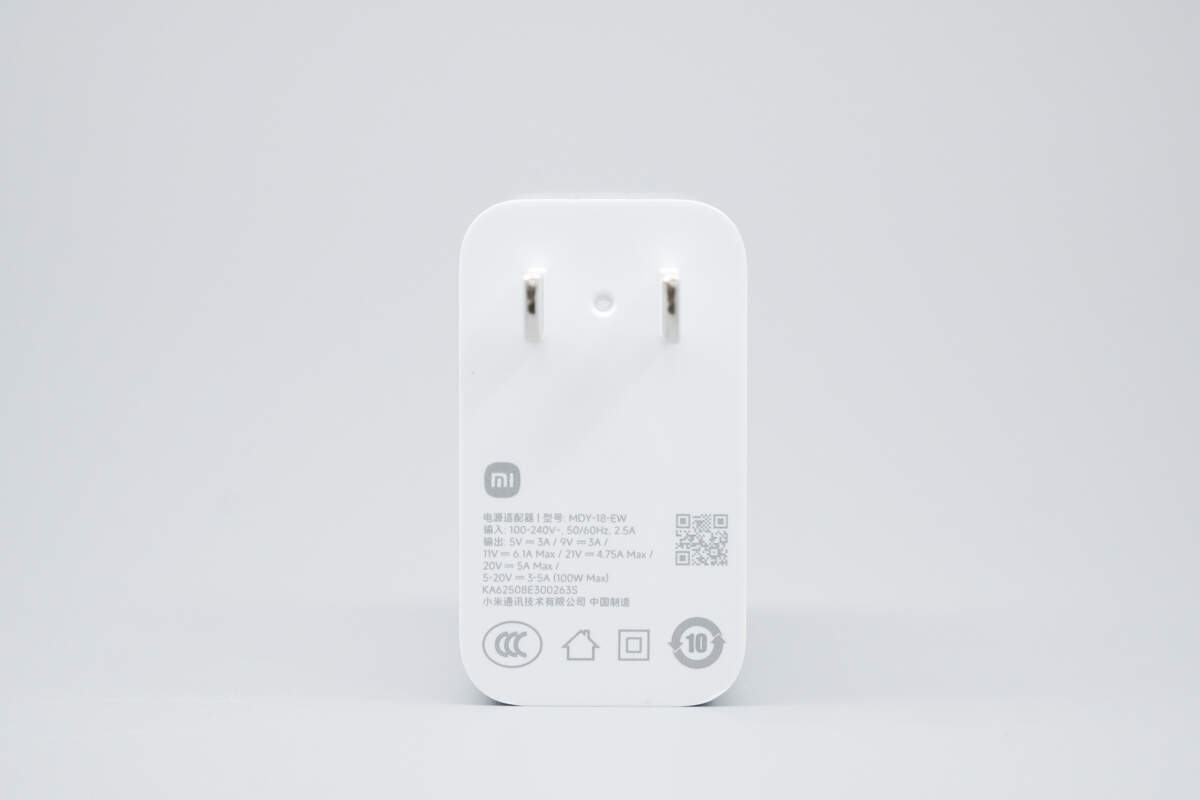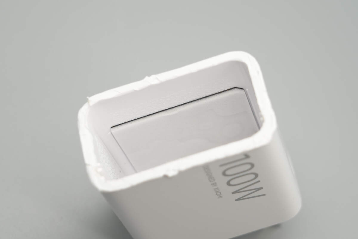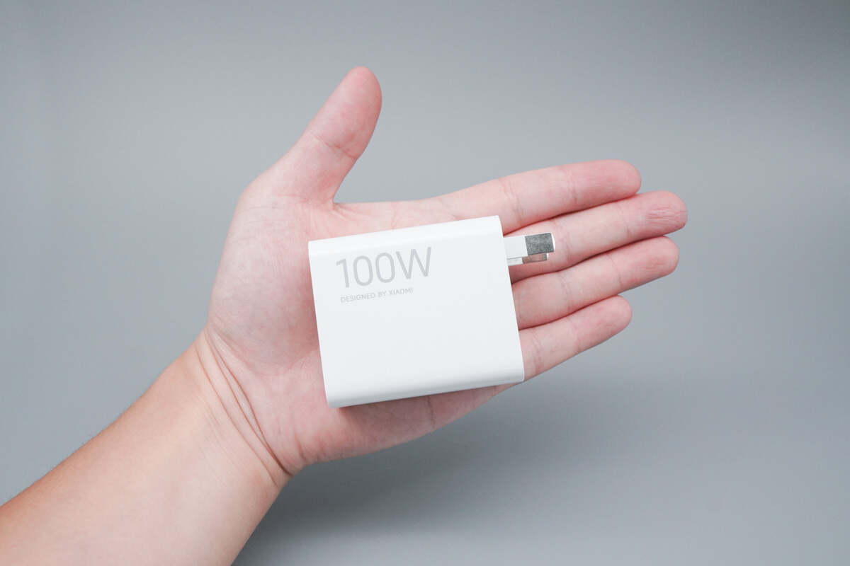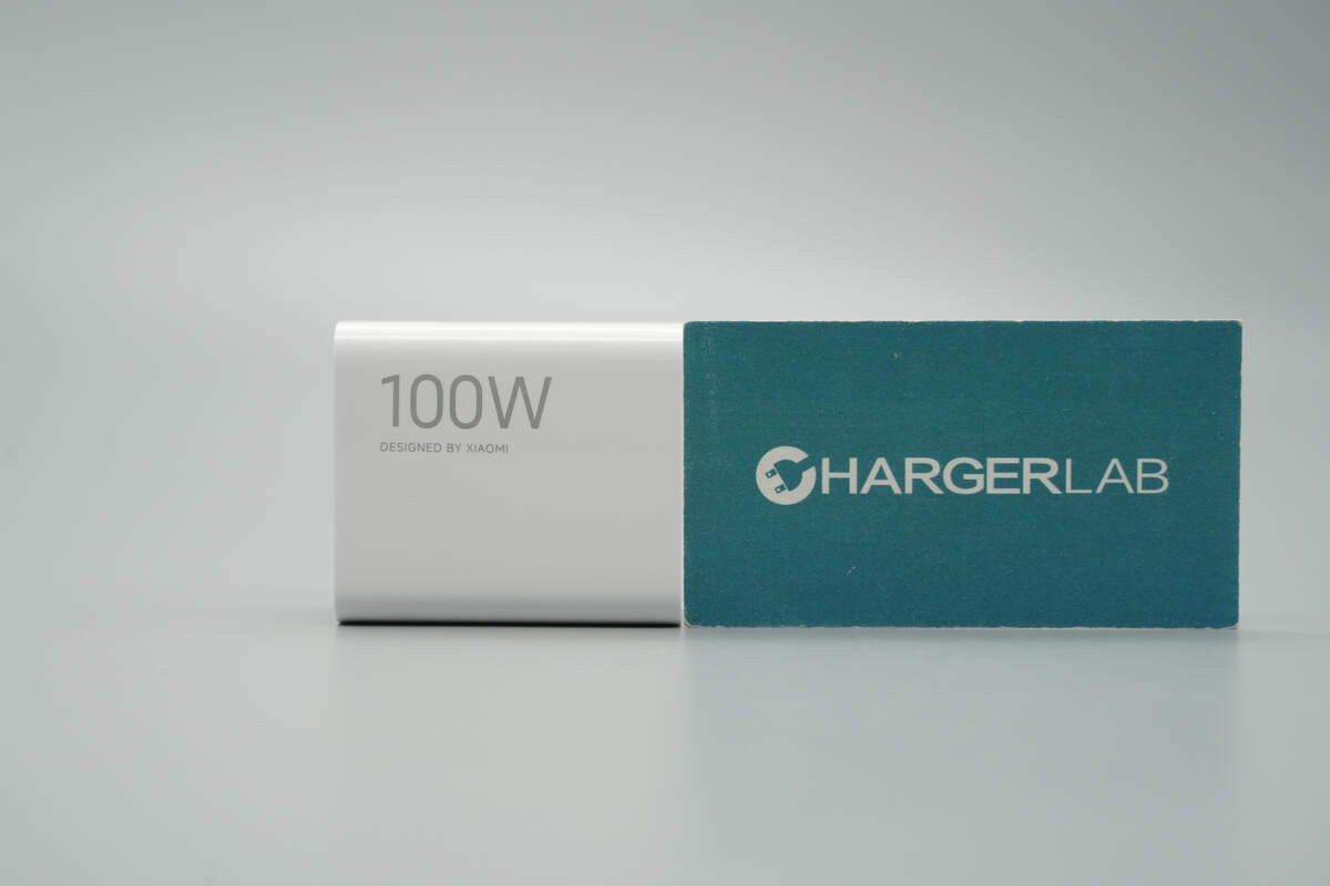 Both sides of the charger body are printed with “100W” and “DESIGNED BY XIAOMI.”