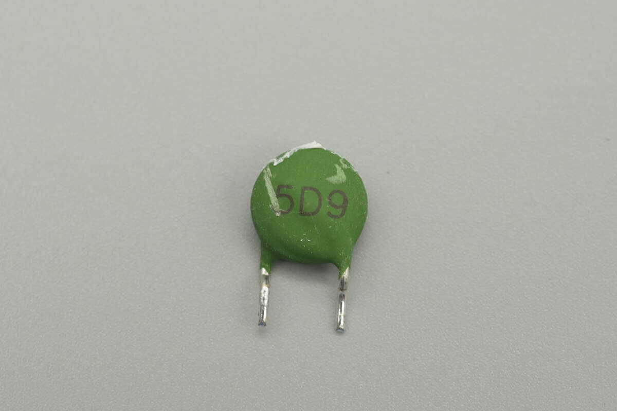 The NTC thermistor marked “5D9” is used to suppress inrush current at power-on.