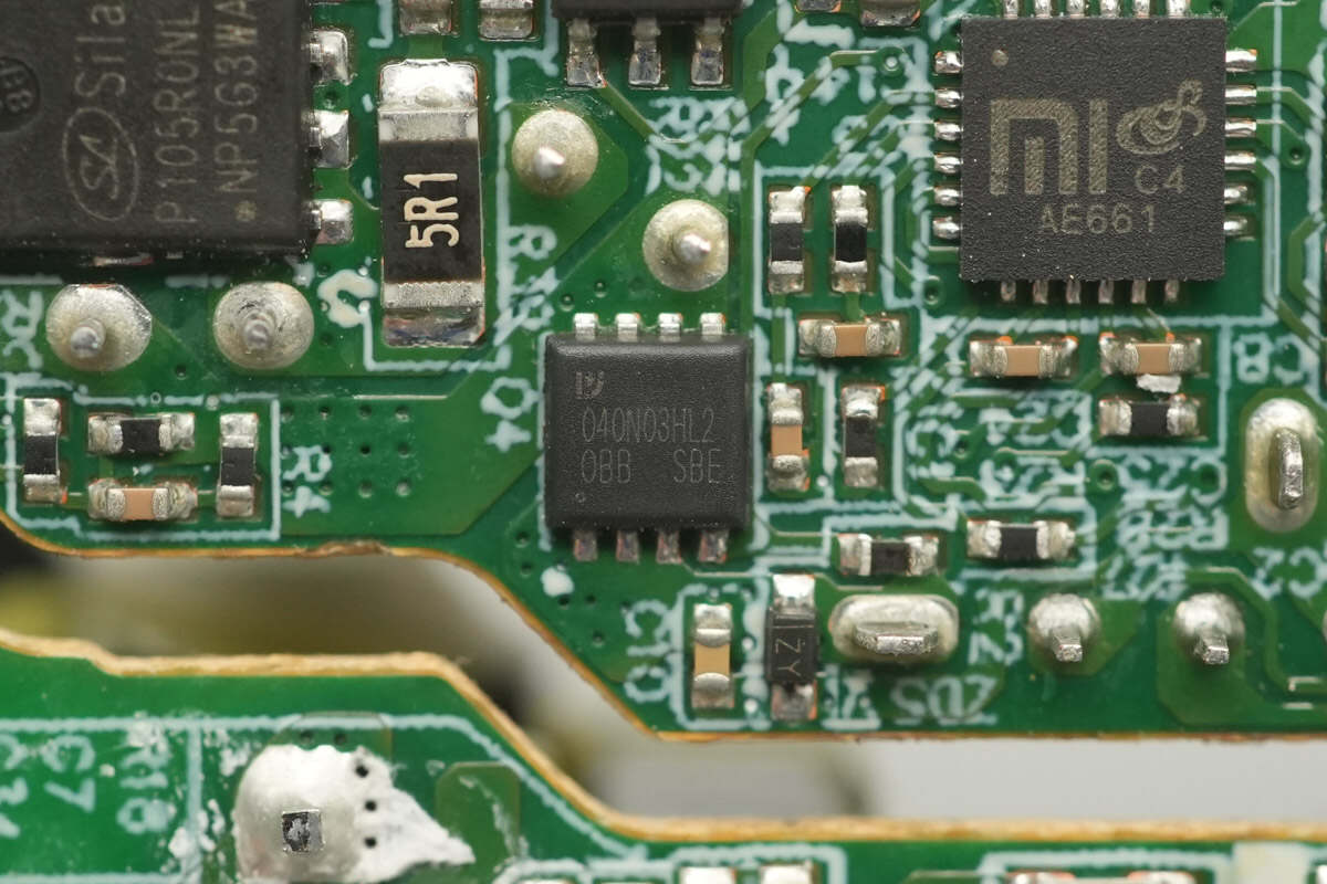 The output VBUS MOSFET is from Pingwei, marked 040N03HL2, and comes in a DFN 3×3 package.