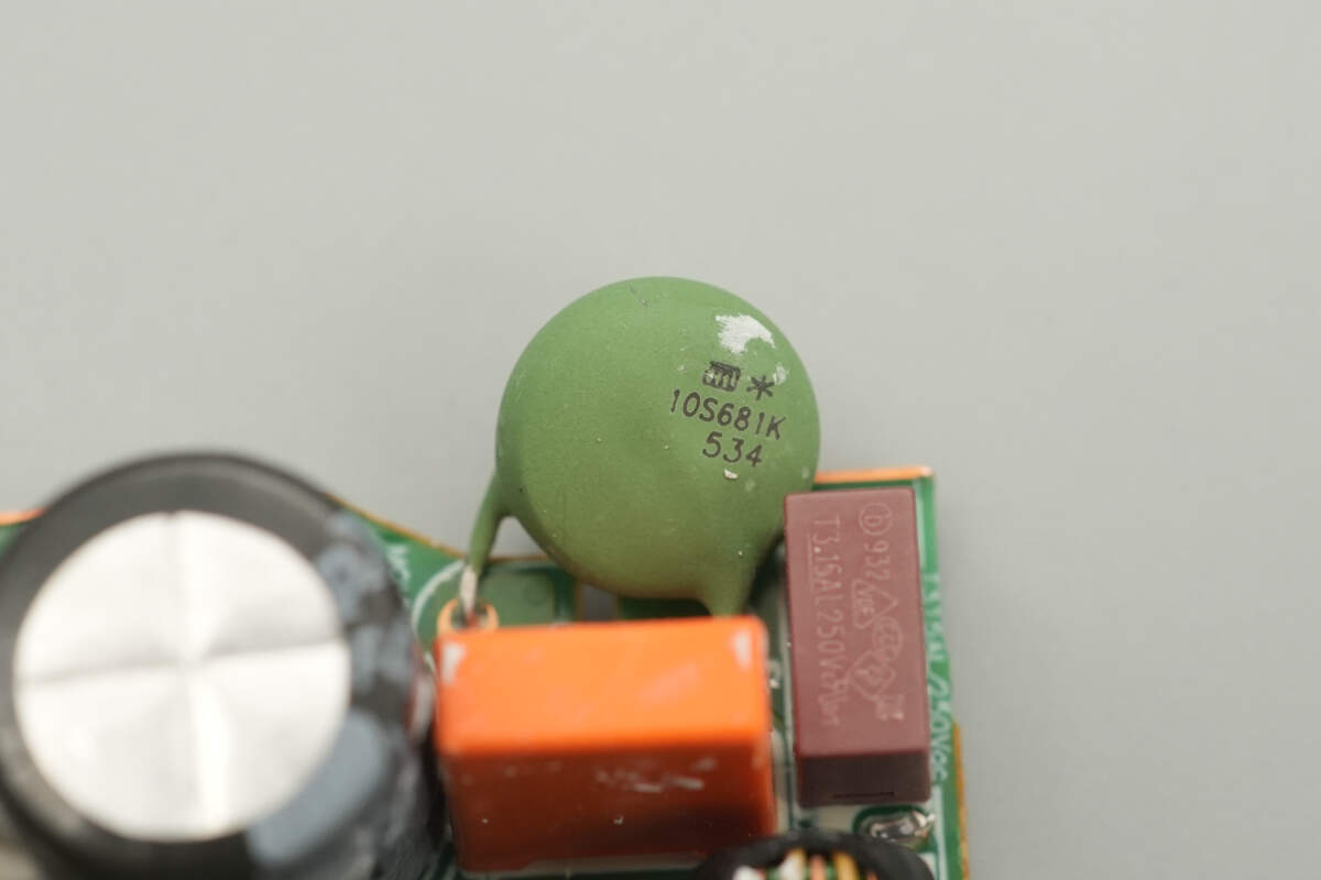 The varistor is from JOYIN, model 10S681K, used to absorb overvoltage surges.